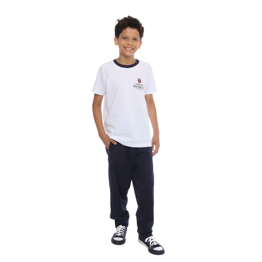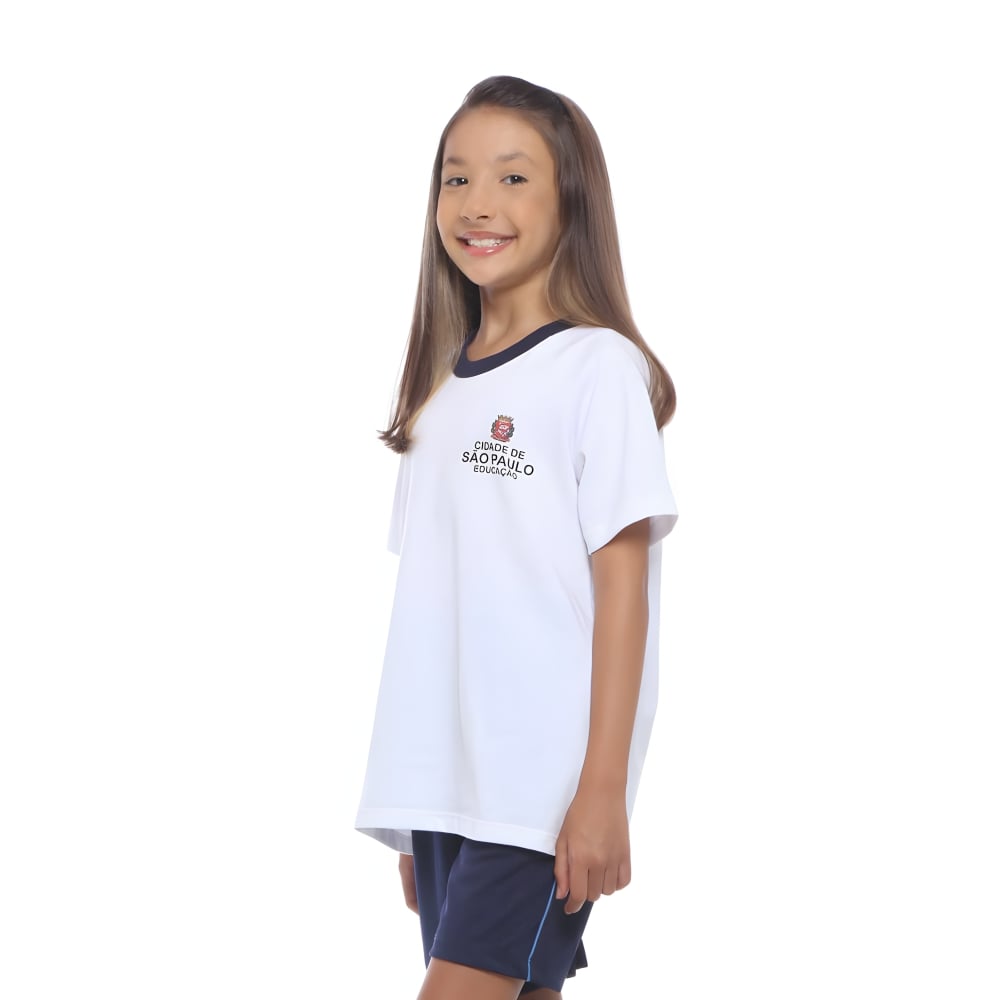 A Camiseta escolar da é confeccionada em meia malha 50% Algodão e 50% poliéster com muito mais conforto, durabilidade e modelagem regular fit para liberdade nos movimentos, possui gola careca e manga curta, com tecido sanfonado no decote.